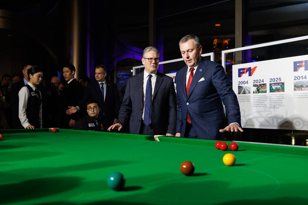 It’s January of this year, and Keir Starmer is wandering through a scene so British that it couldn’t possibly be in Britain. He’s being shown round “House of UK”, an “immersive country branding experience” in Shanghai, which his hosts have laid on to make him feel at home. As he trundles between Peter Rabbit plushies and shop models dressed in Burberry, something catches his eye: a snooker table.