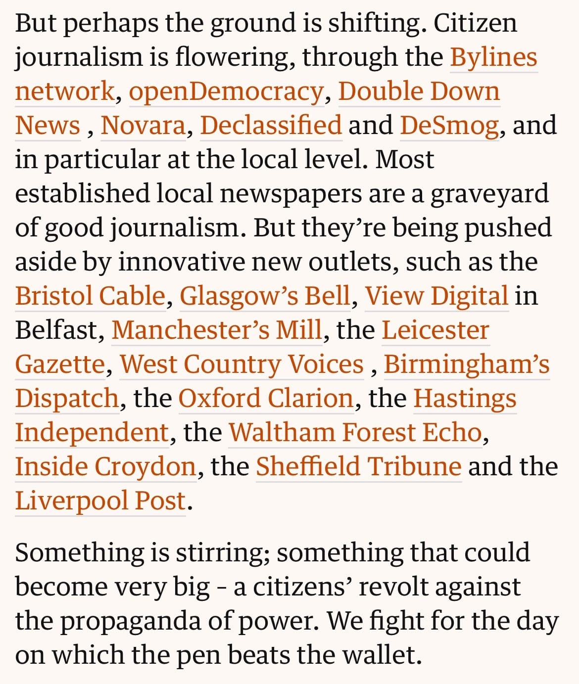 Praise for The Tribune: A big thanks to top environment journalist George Monbiot who gave us a name-check in the Guardian at the weekend. In a piece about what he had learned from 40 years in journalism, he said The Tribune and other pioneering local news outlets like us were bright points in an otherwise bleak picture for local media. Monbiot's piece got us a flurry of new members and helped further spread the word about The Tribune's mission to reinvent local journalism.