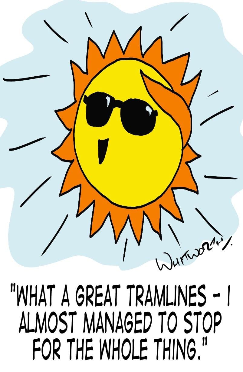 Cartoonist James Whitworth with his own take on Tramlines as fine and dry weather made for excellent festival-going conditions — and Sheffield Council breathed a huge sigh of relief.