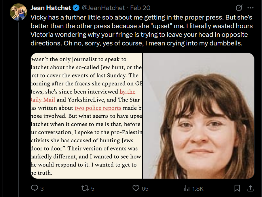 And on Friday, Victoria waded into an almighty online row triggered by pro-Palestine doorknocking in Woodseats. The five members of Sheffield Apartheid-Free Zone accused of “Jew hunting door to door” by Jean Hatchet insist they were doing nothing of the sort.
