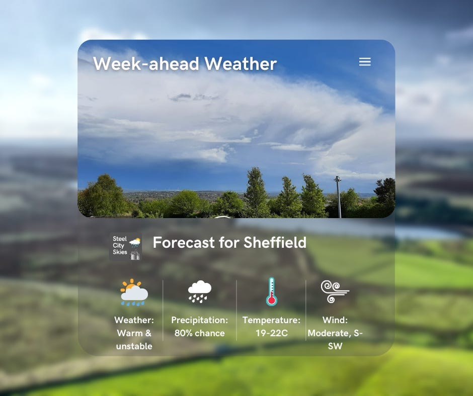 Our weather forecast comes from dedicated Sheffield weather service Steel City Skies, who say with low pressure never too far away and warm air pumping up from the south, a warm but unstable week is expected with sunshine and heavy showers.