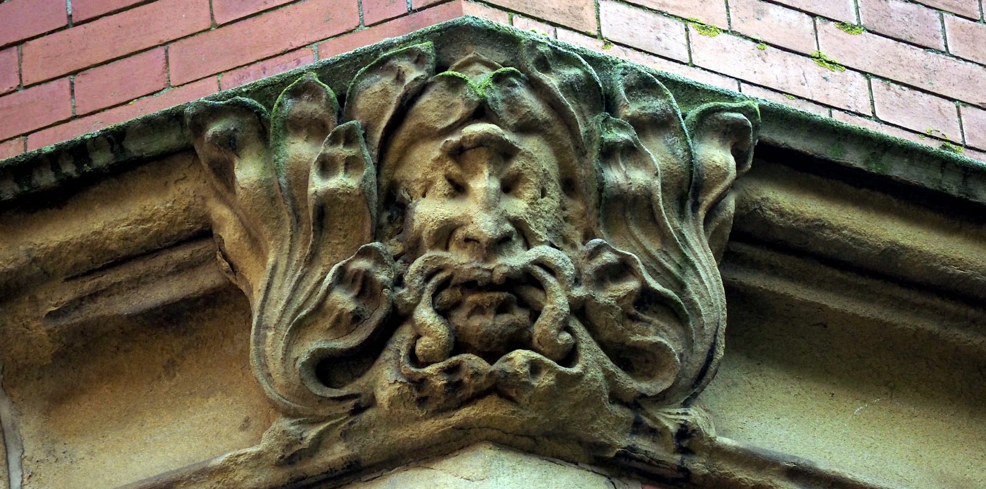 Terry takes me on a stroll through Weston Park, and canny teacher that he is, I know something unexpected is coming. He points to the Victorian eaves of Sheffield University where a bearded face is looking down through foliage intertwined with his moustache. “The Green Man,” he says.