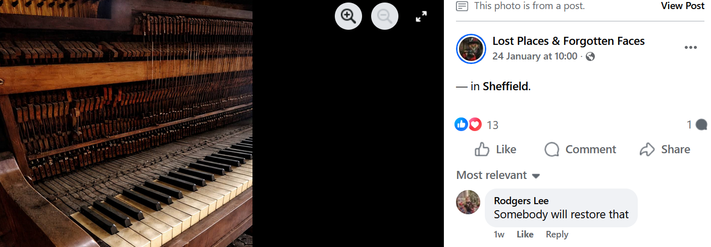 As with so many AI images, it’s the little details that give the game away. A logo on a cardboard box with uneven lettering, one not tied to any company in the real world. A piano with keys in the wrong order. Lost Places & Forgotten Faces — a full-time professional trespasser who tells me Sheffield is “is probably [his] favourite city in the UK to explore” — seems to have known better than to give some of these pictures, from inside The Adelphi in Attercliffe, to the local papers which eagerly document his exploits. The photos he demonstrably stole, however, he was more than happy to share.