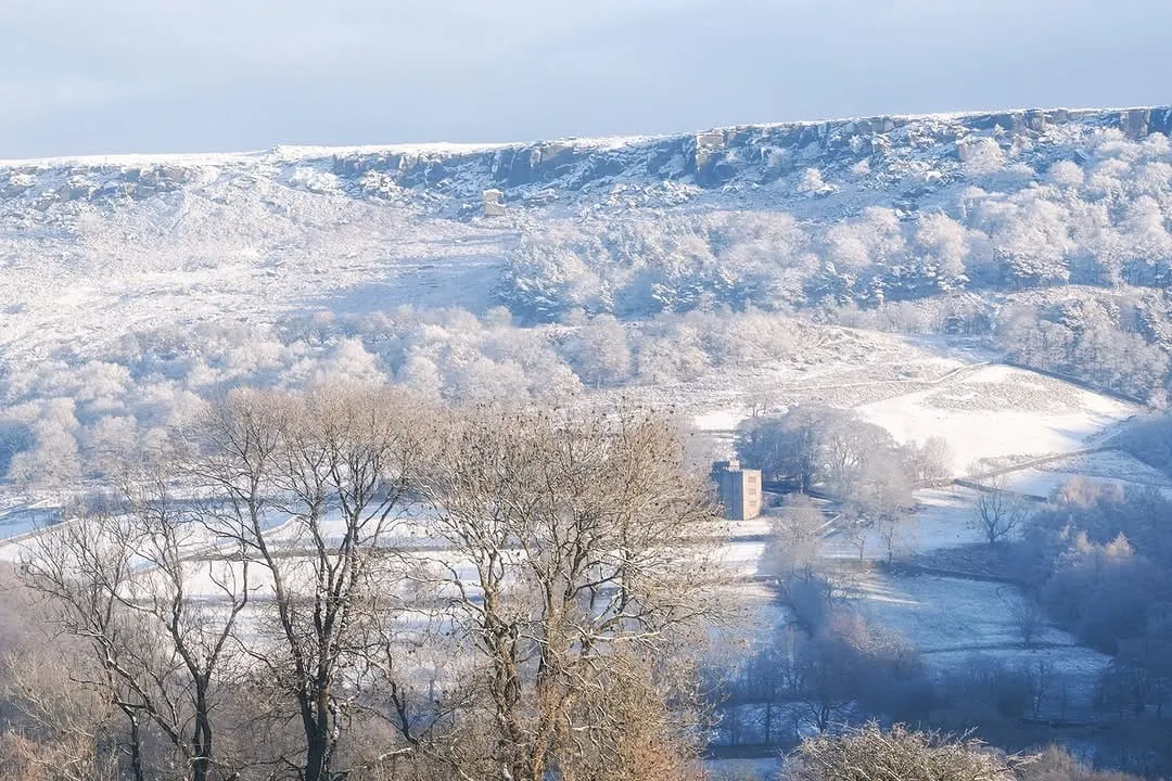 The Peak District has been looking stunning in the snow. This wonderful shot, by Instagram photographer Peaklass, shows a snowy Stanage Edge with North Lees Hall, the Grade II-listed stately home which is said to be the inspiration for Thornfield Hall, Mr Rochester’s home in Charlotte Bronte’s 1847 novel Jane Eyre.