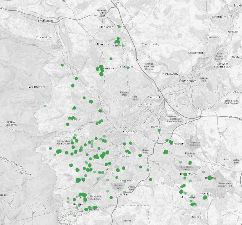 In Sheffield, TPOs are not evenly distributed. As the map above shows, most are to the west of the city centre, though there are significant clusters to the north, and the south east. In the ward of Dore and Totley there are 212 protected trees, but between them, the four wards of Burngreave, Firth Park, Shiregreen and Brightside, and Southey have none. This isn't because they simply don't have trees; coverage is quite high in some of these wards. It may be a result of development pressures being lower — TPOs are often set up when people worry they might be lost in a new development soon. And it may be because in less affluent parts of the city, there are fewer people who have the time and familiarity with local systems to lobby the council about tree protection.