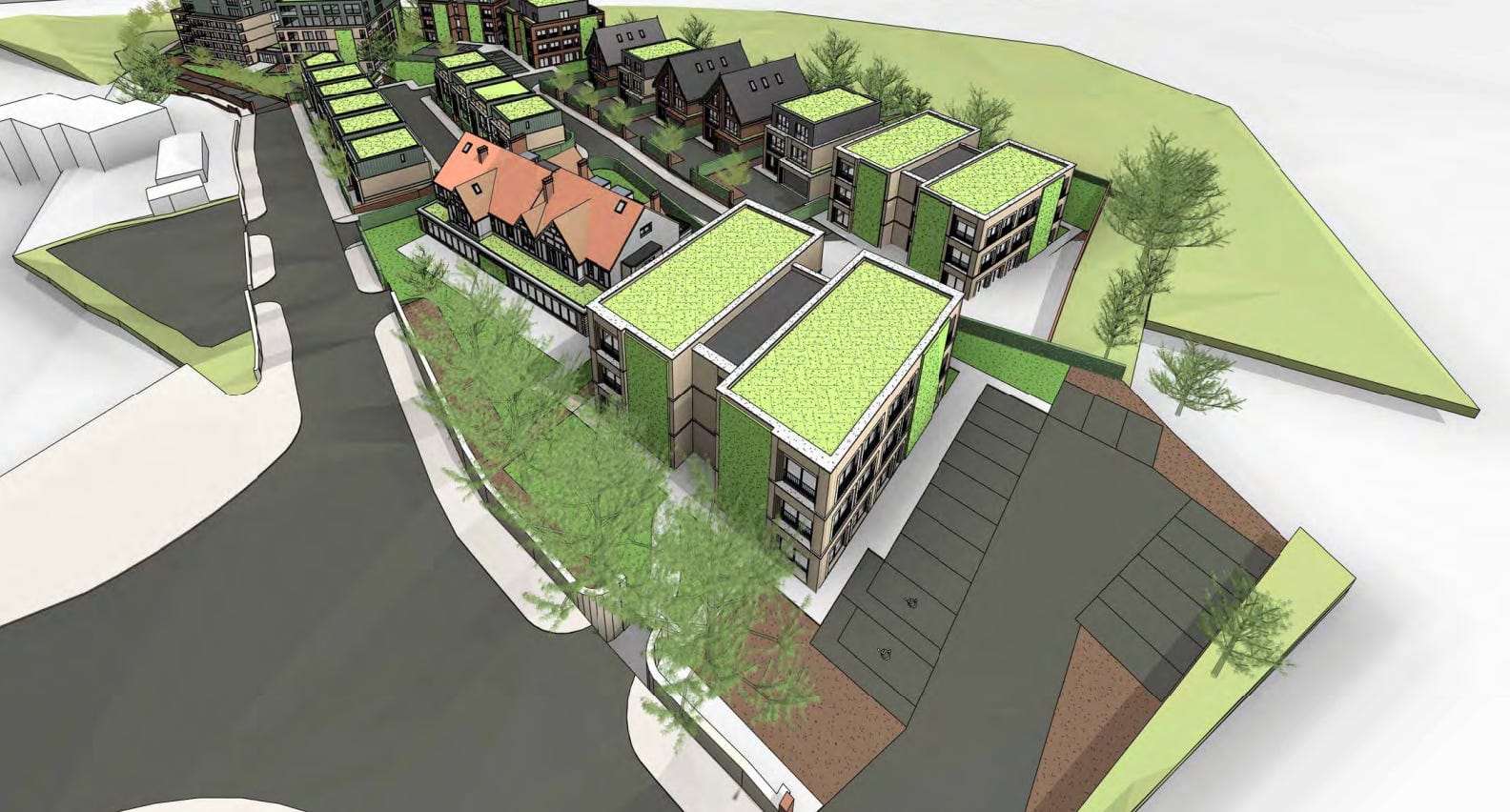 The site’s developers aren’t exactly hiding their intentions. “We propose to create outstandingly unique homes of impressive scale,” reads the application. The estate will consist of 15 houses, six apartments, and five more apartment blocks housing a total of 67 units. The artist’s impressions show buildings ranging from four storeys at the top of the site to nine storeys at the bottom. But architects Blenheim say that despite their scale, the homes will “nestle into the landscape and compliment the surroundings” (they say the bottom three storeys of the nine storey building will actually be below ground so won’t be visible from Woofindin Road).