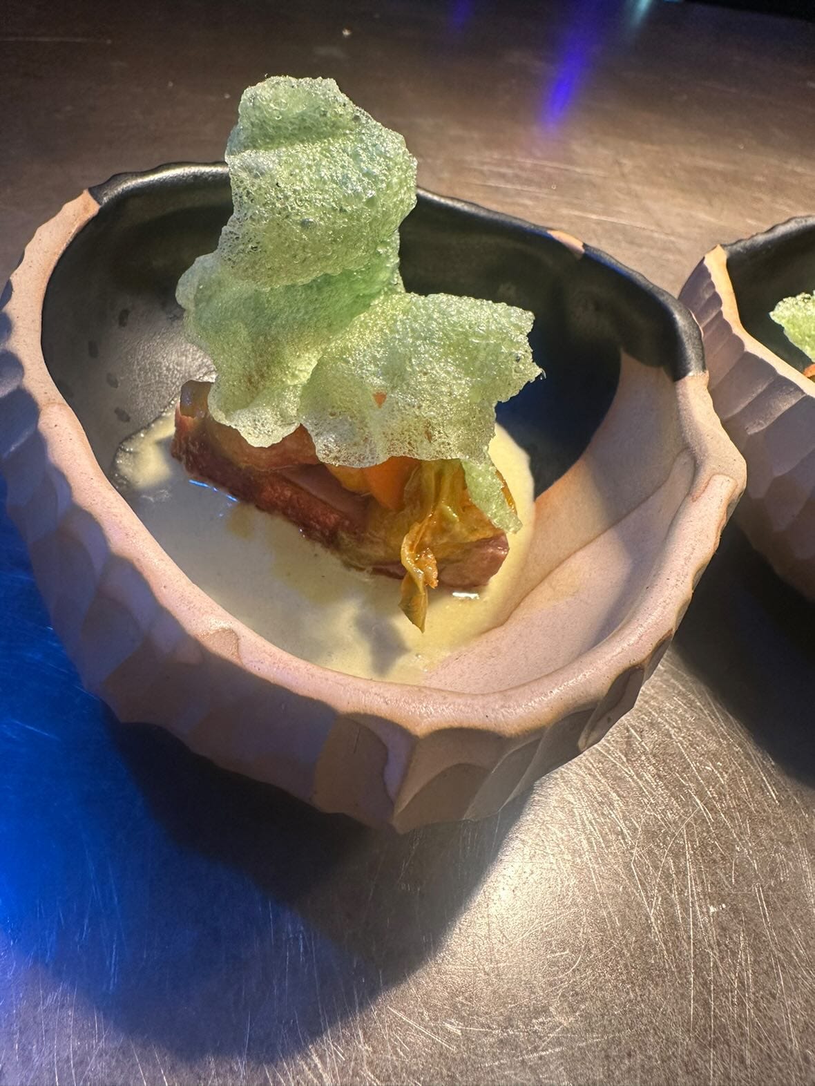 So, did I enjoy Norse as a vegan? Honestly, no. It was a fun experience, but I definitely wasn’t the target market for the food. To get the full experience, you really need to be an omnivore, which is why I’m glad I took Martin along with me. Of the 14 courses, he only actively dislikes one. Course number 10: the mallard (paired with a chilli sorbet, warm lemongrass milk and salted caramel) was, he said, “like eating something from an Anglo-Saxon dig.” Try as he might, he couldn't cut into it with his knife, meaning he had to chew at one end of the meat while the other dangled down his chin “like some Medieval peasant”.