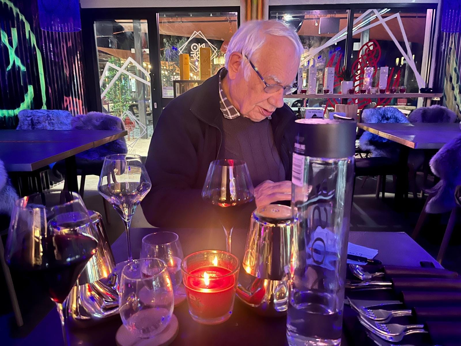 As we settle in, Dawes faces the kitchen so he can see what’s going on. He accepts early on that Norse probably isn’t aimed at him. The low-light environment, the loud music, and the UV graffiti on the walls — ‘Fuck Em Up With Flavour’ being one choice example — aren’t his cup of tea, to put it mildly. But more than the vibe of Norse, he doesn’t really care for the multi-course tasting menus so beloved of chefs these days. He thinks not being able to choose what you eat robs you of agency. “I’m going to come across as a curmudgeon, but they know what they are going to do before you get there,” he says. “It’s lazy cheffing.”