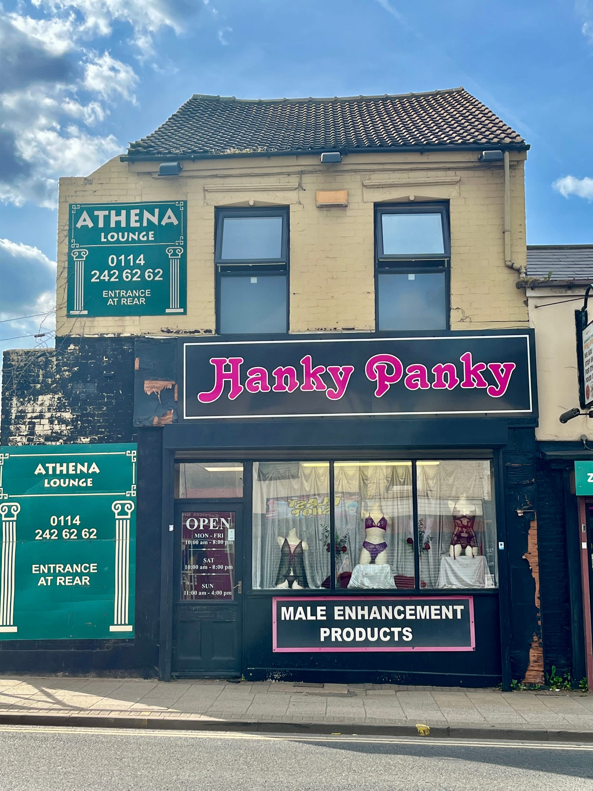 It’s changed a bit since then, and some of the seedier venues (including notorious swingers’ club La Chambre) have now departed. Of the sex shops which are still standing, the most prominent is Hanky Panky. Three mannequins dressed in risqué lingerie stand in its window while a sign painted on its facade in huge block capitals reads MALE ENHANCEMENT PRODUCTS. A few doors down, massage parlour Diplomat’s inscrutable exterior informs clients: “Entrance to the rear”. Nudge nudge, wink wink.