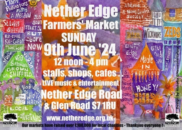 🧺 This Sunday sees the return of the ever-popular Nether Edge Farmers’ Market (12pm-4pm). As well as more than 50 stalls, all the local businesses will be open including Wickwire, Oxfam, Zeds Wholefoods, Kollective Kitchen, St Luke's Boutique, Bench, Nether Edge Bowling Club, The Byron, Edge Dental and Cafe#9. Entertainment will be provided by the Salvation Army, the Nether Edge Primary School Choir, Irish dancers Scoil Rince Nua and Blue Street Brass.
