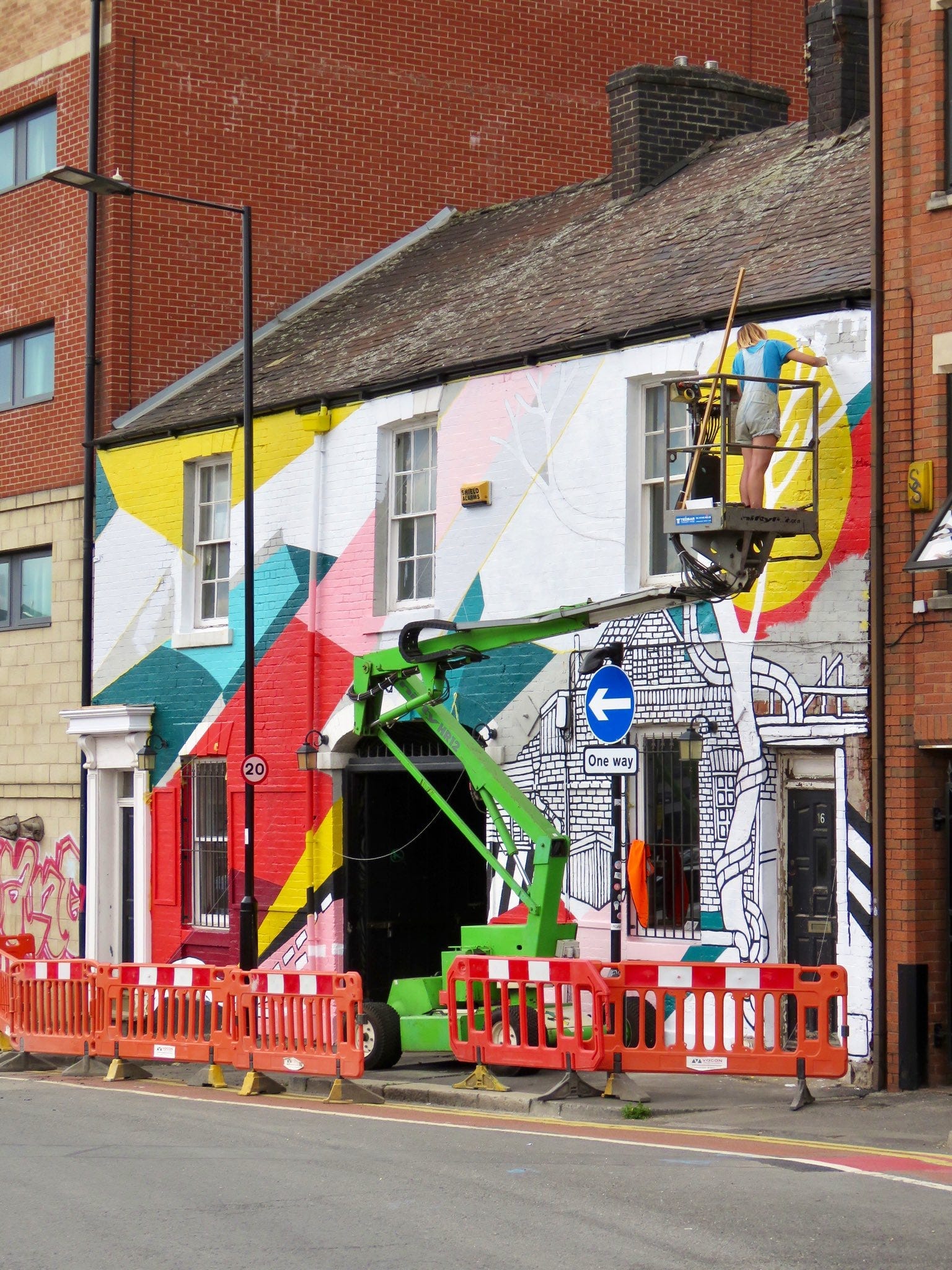 The Paint Jam Weekender took place at the new Pinball Park in the Cultural Industries Quarter on Saturday and Sunday. There was loads of great street art created over the weekend, with one of the best being this fantastic new mural at APG Works on Sidney Street by Jo Peel and Mark McClure, nicely photographed by the Steel City Snapper.