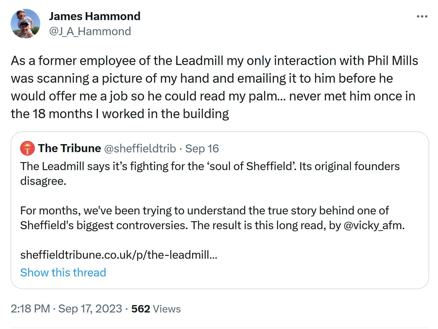 It made sense. So far, Mills’ refusal to speak publicly has been the curious void at the centre of the Save The Leadmill campaign. That’s why, when a man who looked like he could be in his early seventies abruptly asked to say something about two hours into the almost four hour-long meeting, I initially refused to believe what I knew must be true. But The Leadmill’s general manager later confirmed it: this was he.