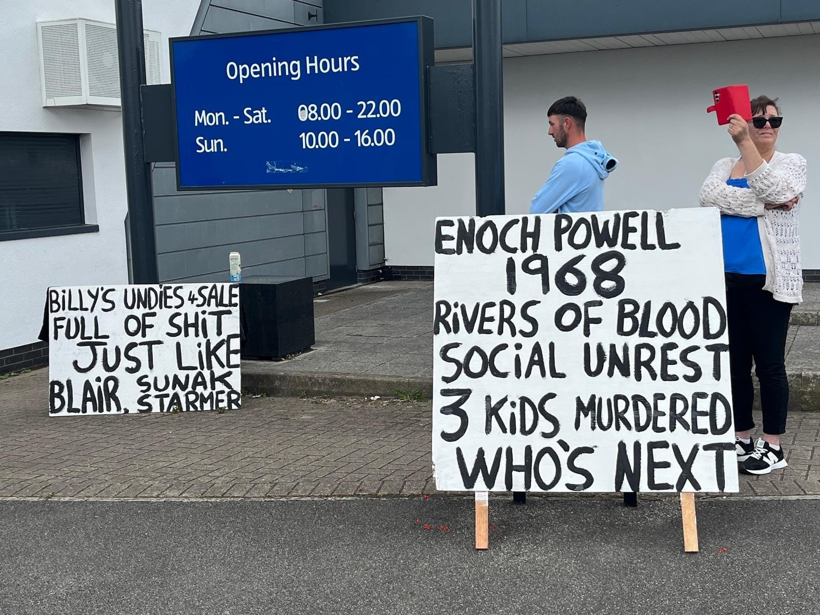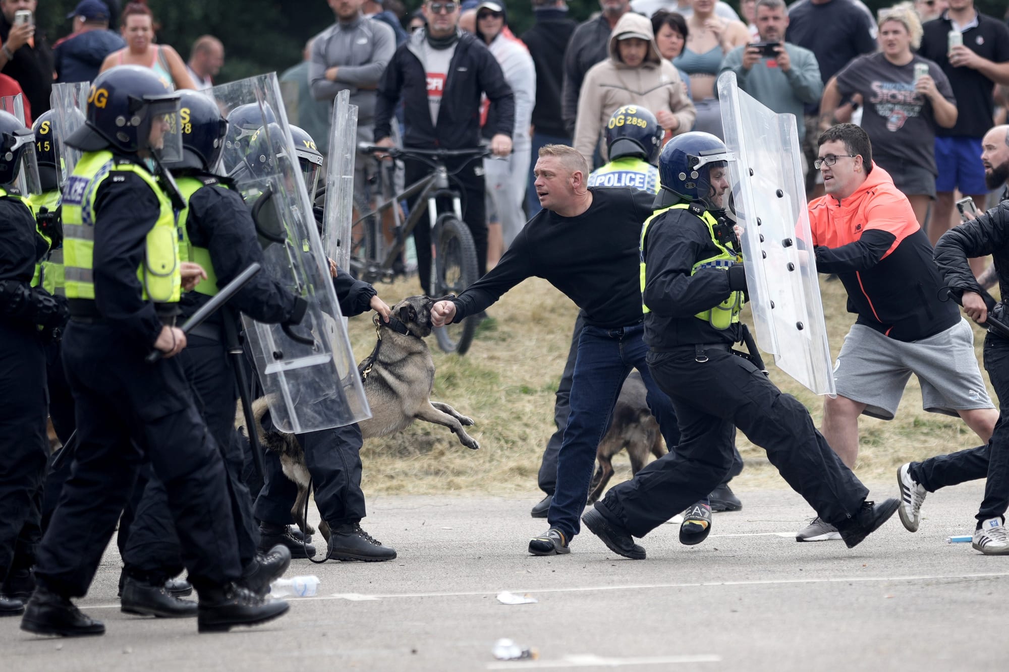 “You’re protecting them,” one woman shouted at three police officers on horseback. “They are raping and killing our kids.” One man shouted “nazis, fucking nazis” at the police, seemingly oblivious to the irony of what he’d just said. “Save our children,” some people chanted, including those who had brought their own children to a riot.