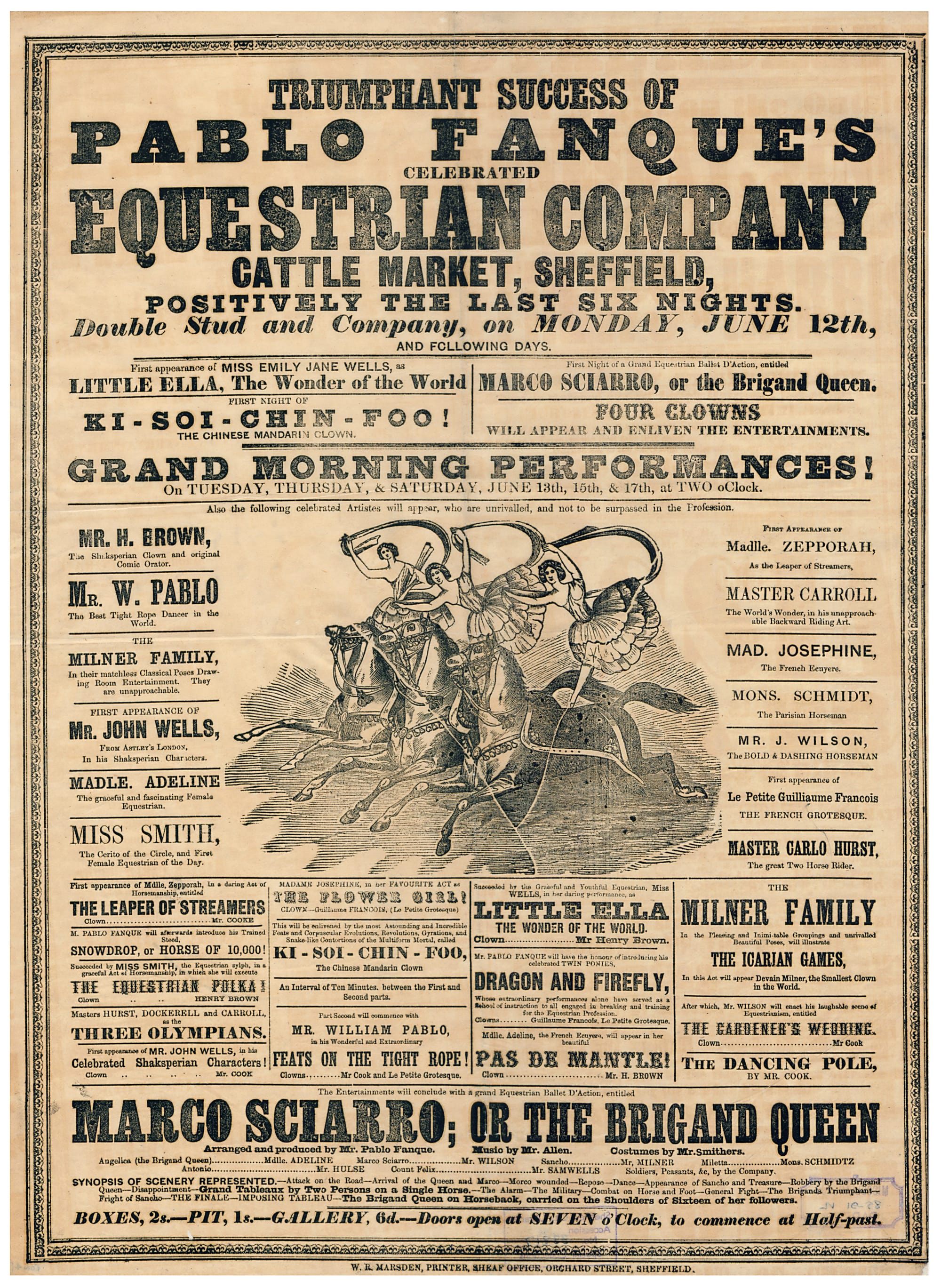 But it wasn’t just Pablo, all the major international circuses of the era came to Sheffield. These included equestrians William Batty and Andrew Ducrow and the American Isaac Van Amburgh, the proprietor credited with the introduction of lion taming to the circus retinue.