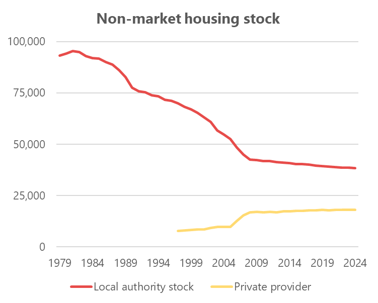 A changing market: The Big Issue’s investigation has put the spotlight back on Right to Buy, which many believe has been one of the key drivers of the housing crisis. Since it was introduced in 1980, social housing stock in Sheffield has plummeted, before a more gradual decrease after the financial crisis. The number of social homes now stands at 38,235 — well under half of the peak in 1981 (95,293). At the same time, housing from private housing providers like housing associations has picked up some — but not most — of the slack.