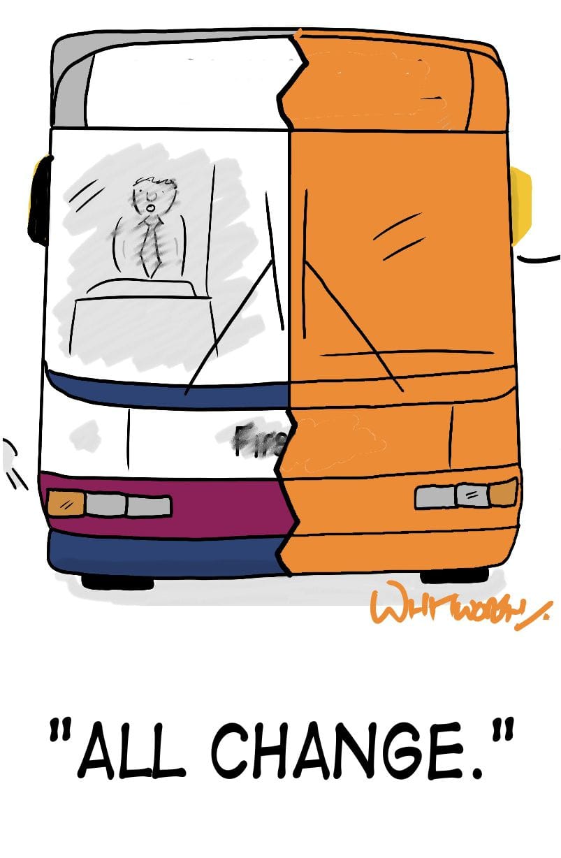 Cartoonist James Whitworth with his take on the South Yorkshire People’s Network and our fancy new “molten orange” buses.