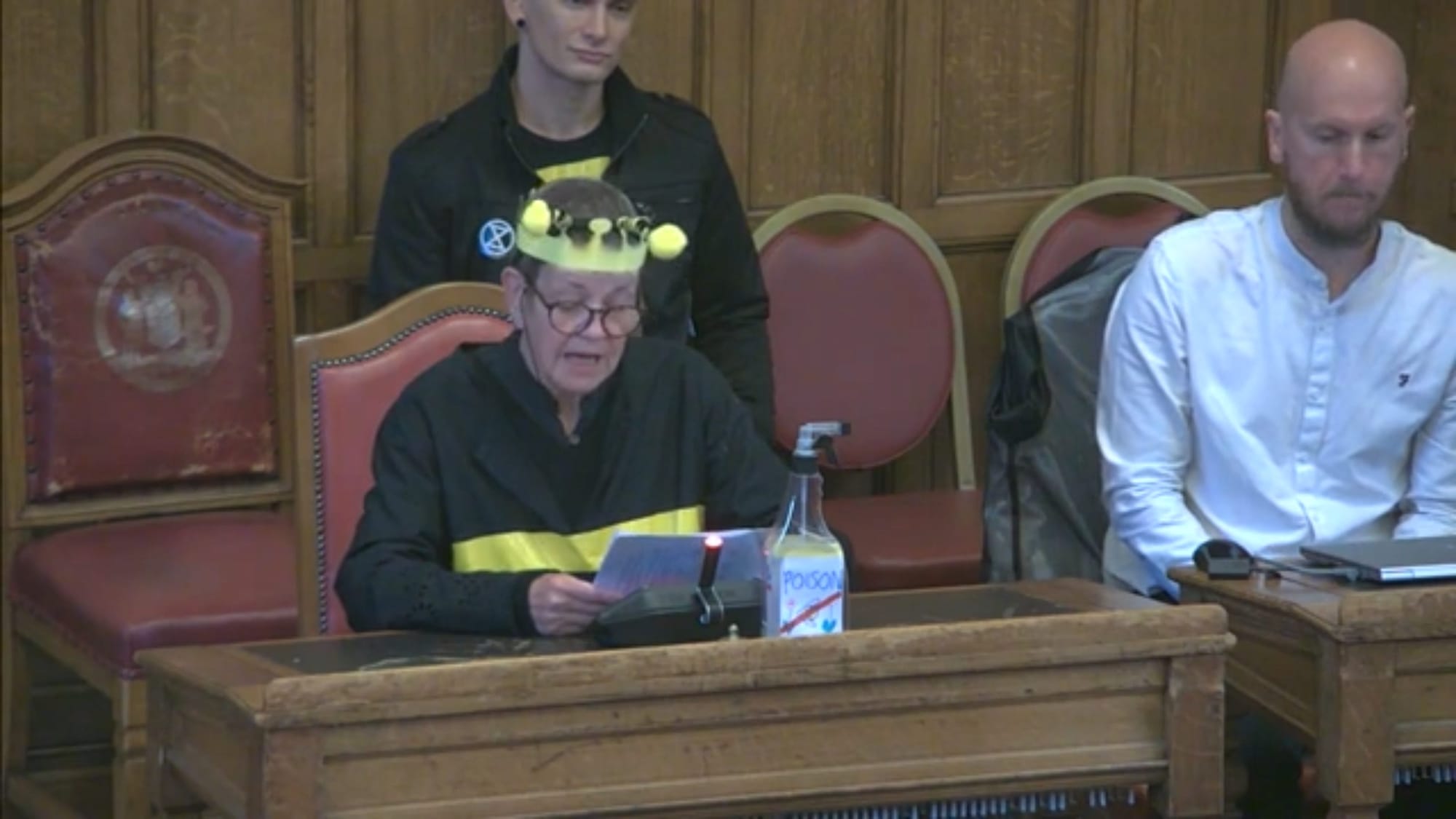 This week, Cllr Otten, as chair of the Waste & Street Scene Policy Committee, had to answer to a hive of costumed protestors from Extinction Rebellion Sheffield, who wanted to know why glyphosate is still being sprayed on the city’s streets. In the last 20 years, the number of flying insects in the UK has fallen by close to two thirds. “The first thing to do to reverse this trend is to stop poisoning them with herbicides, insecticides and pesticides,” Izzy tells the chamber.